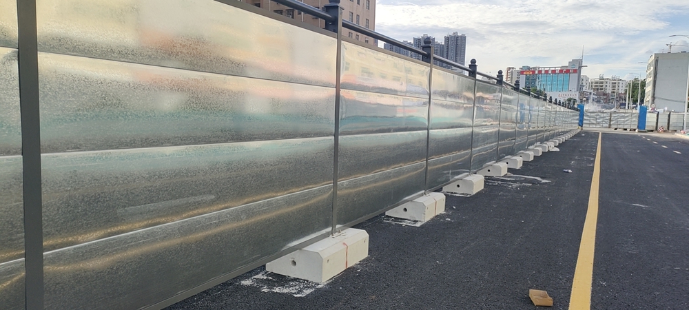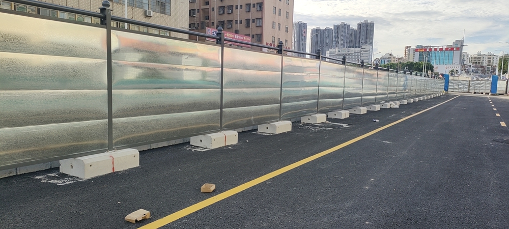 鋼結(jié)構(gòu)圍擋C4款是在深圳市交委方案標(biāo)準(zhǔn)設(shè)計(jì)的基礎(chǔ)上,稍做優(yōu)化,上下橫梁為50*50方通,圓梁改為76鋼管,面板為鍍鋅扣板2980*470,灰色烤漆立柱高度為2.25米,加上預(yù)制基礎(chǔ)高度30cm,達(dá)到交委要求圍擋的整體高度、地面以上2.5m ,使人行道、廣場、泥巴地這些不易安裝的地方更好施工,并且為客戶節(jié)約了一定的材料費(fèi)用。