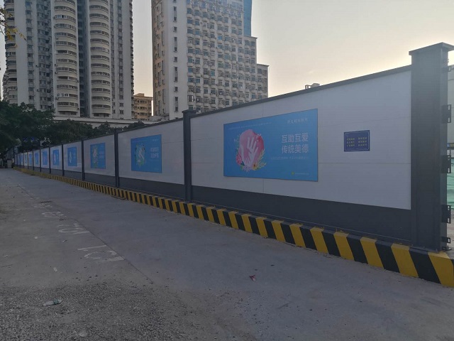 在安裝圍擋前,應該在施工現場周圍應設置施工圍欄,多層、高層建筑應設置安全防護設施。市區主要道路、景觀道路、機場、碼頭、站前廣場等處的施工圍擋高度不應小于2.5m,其他道路的施工圍擋高度不應小于1.8m。