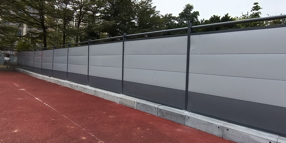 鋼圍擋C款旭東根據深圳標準研發生產的最新款式圍擋,是由一根立柱,一根隱形立柱,4根橫梁,8塊面板組成。其中立柱橫梁,還有2塊面板是灰色,其余為白色。立柱上面可以安裝太陽能燈或者噴淋系統,簡單方便。配合水泥基礎塊安裝快速且高效。面板由鍍鋅扣板改為彩涂扣板,底部為一塊灰色,上面三塊為白色;這是因為一些靠近主路或車流量相對大的路段鍍鋅扣板在陽光照射時易反光,容易讓過往行人及車輛駕駛人員刺眼眩目,造成不安全因素。為避免此類情況和提高美觀度,特改用彩涂扣板材料。